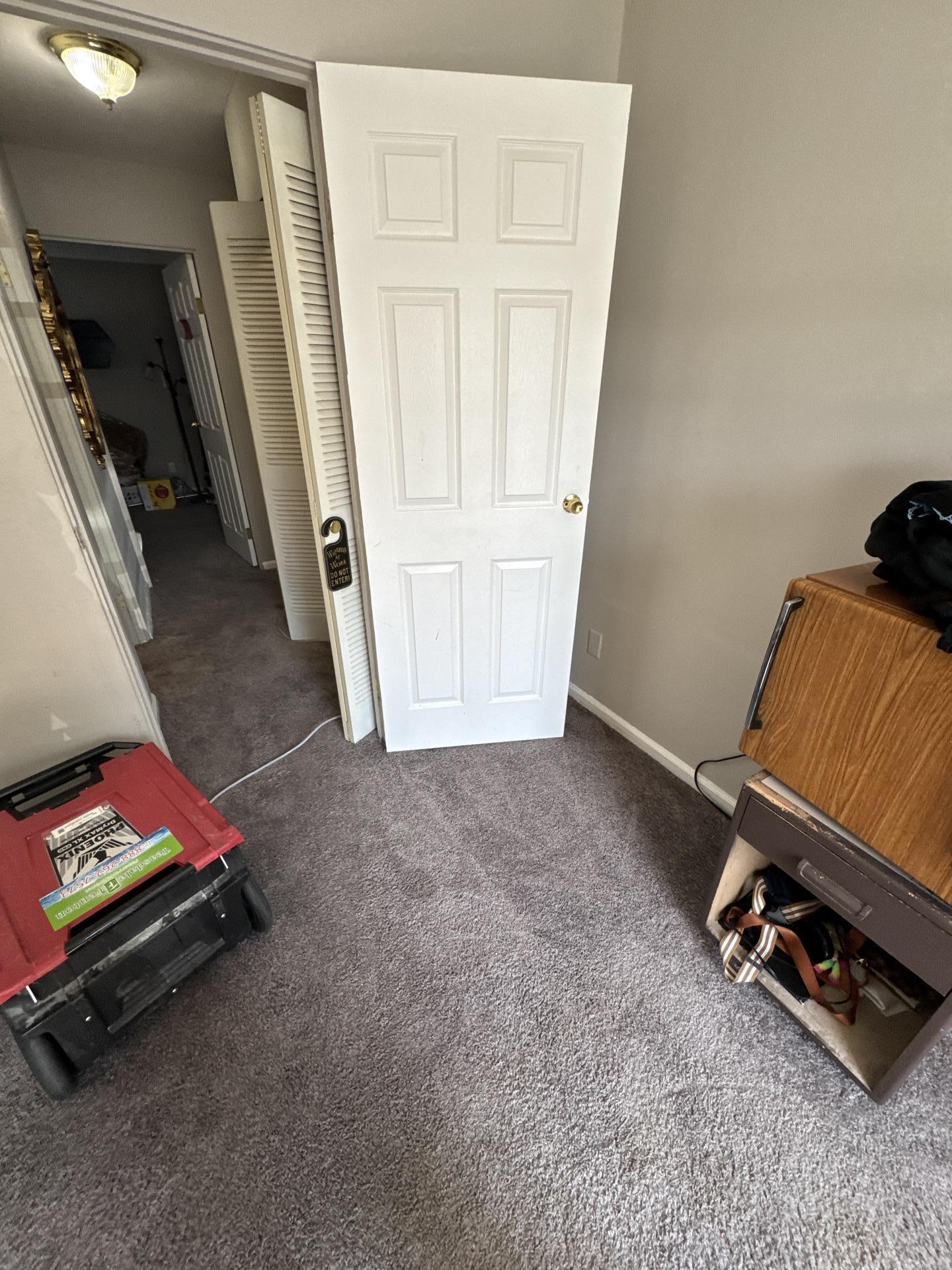 Our team promptly responded to the water damage in the apartment. We assessed the affected areas, which included both carpeted rooms and a utility closet with standing water near a water heater/furnace. We initiated water extraction, set up specialized drying equipment, including industrial fans, and began the structural drying process to prevent further damage and mold growth in the affected areas of the apartment.