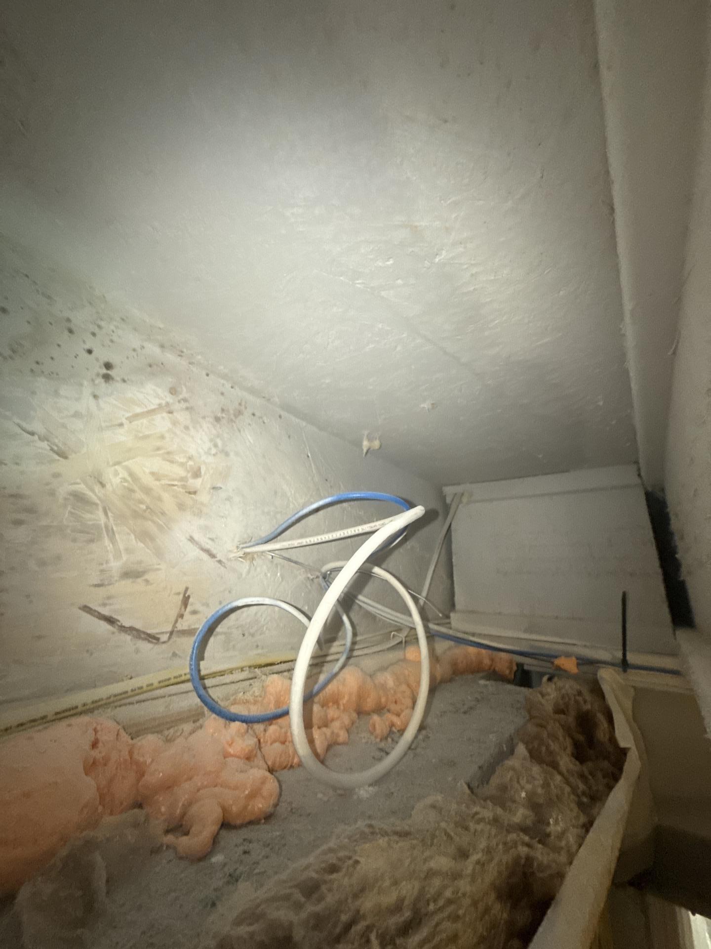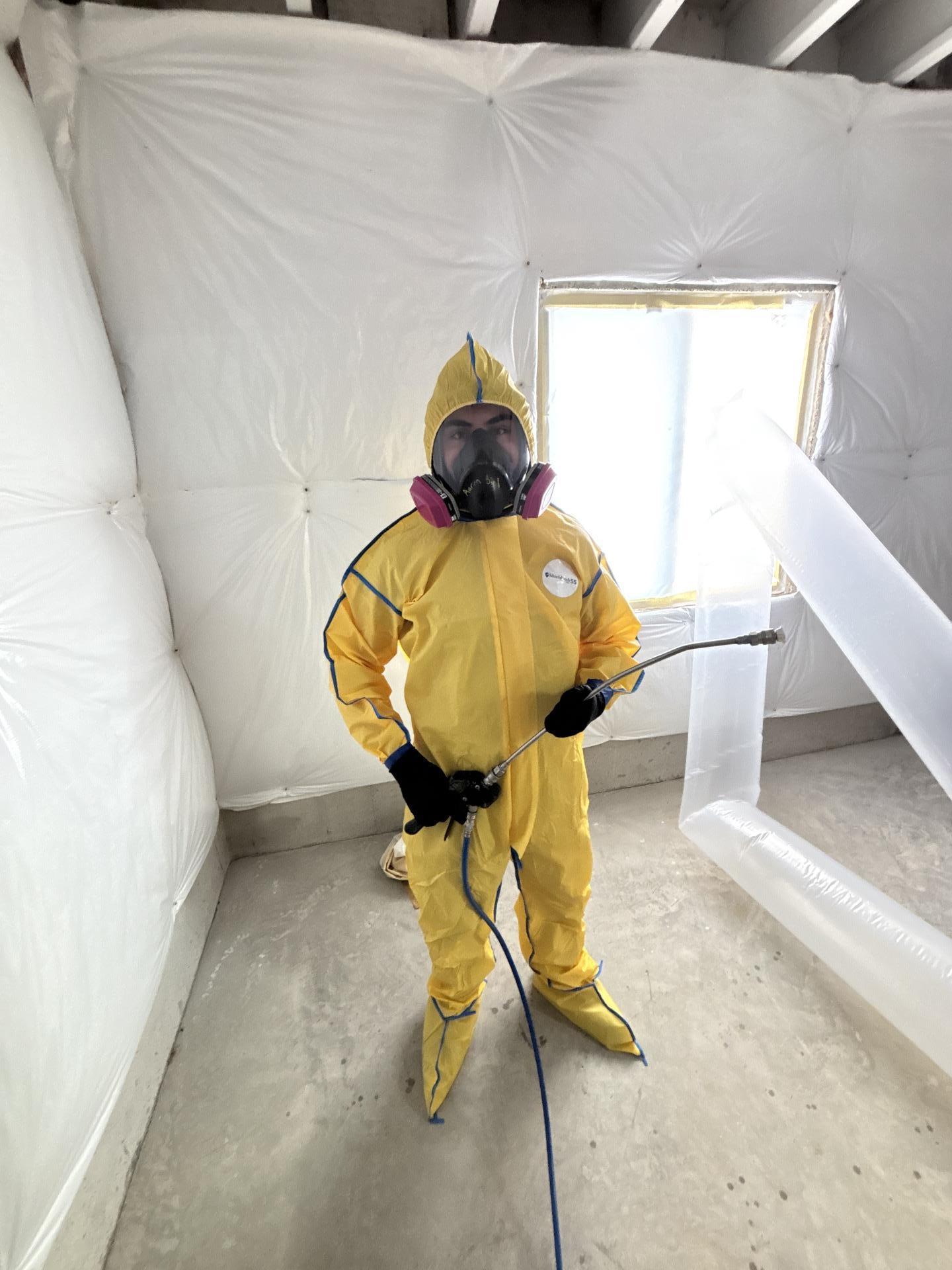 Basement mold infestation requiring professional remediation, containment, and cleaning.