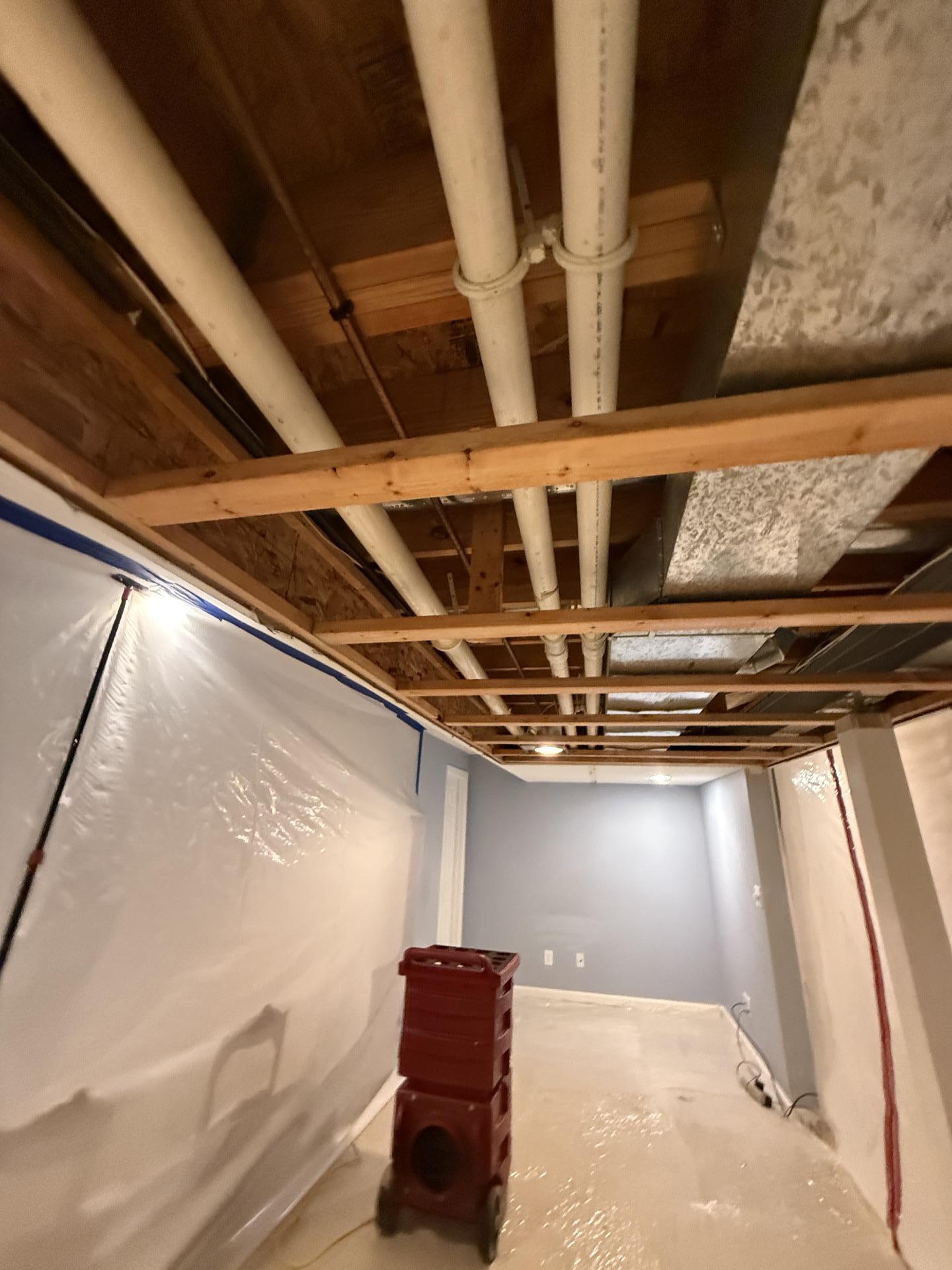 Teasdale Fenton provided comprehensive mold mitigation, anti-microbial treatment, and detailed cleaning services. This included structural remediation in a basement with exposed ceiling joists, the use of drying equipment (dehumidifiers/air movers), and meticulous cleaning of surfaces like doors and walls to eliminate mold and apply anti-microbial agents.
