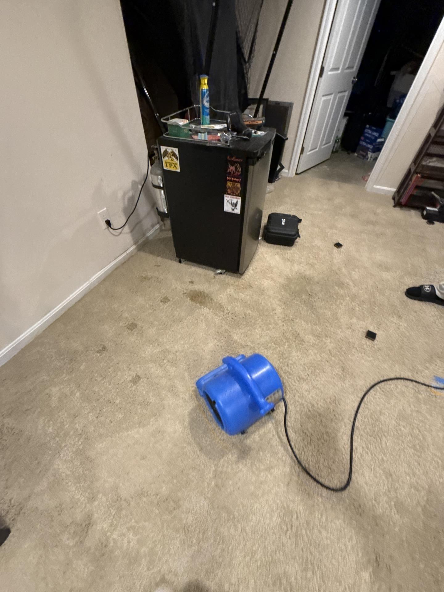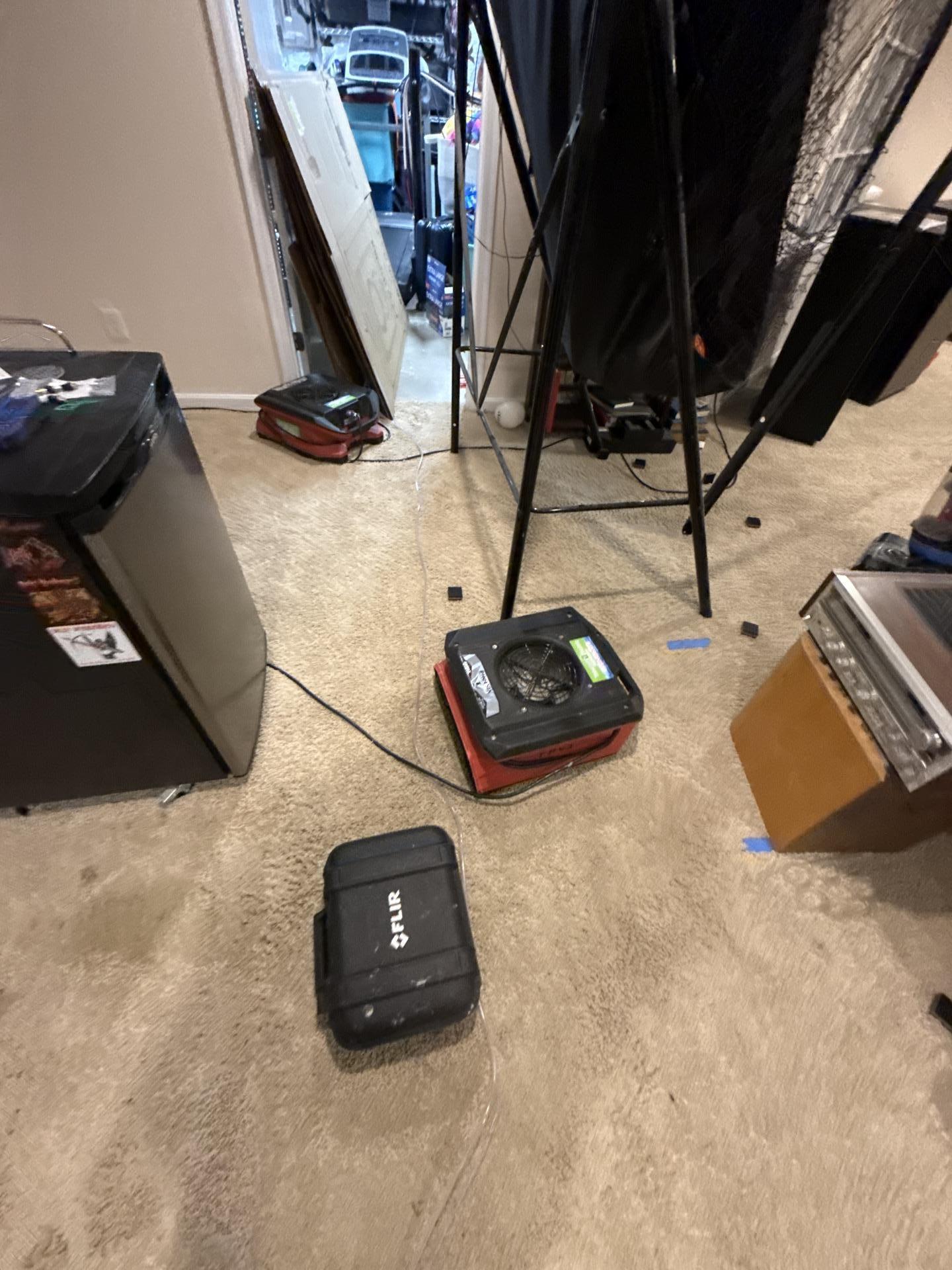 Our team promptly responded to the water damage issue. We utilized advanced thermal imaging technology to accurately detect the extent of the moisture, including hidden water pockets. Following detection, we performed thorough water extraction from the affected carpeted areas using specialized equipment. To ensure complete drying and prevent secondary damage like mold growth, we set up professional-grade drying equipment, including multiple high-velocity air movers and dehumidifiers, throughout the affected space.