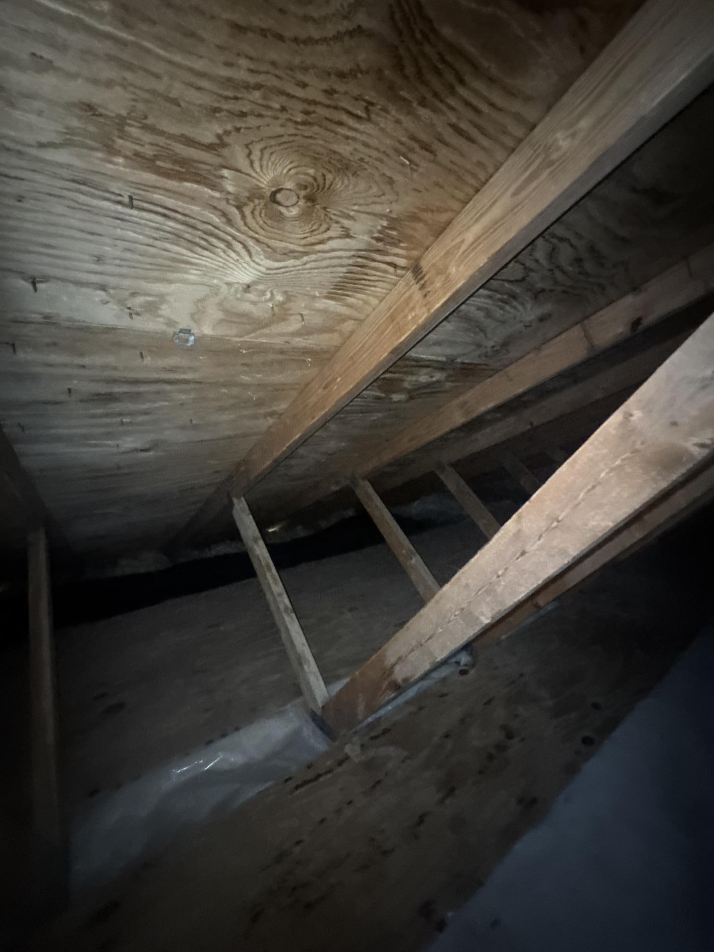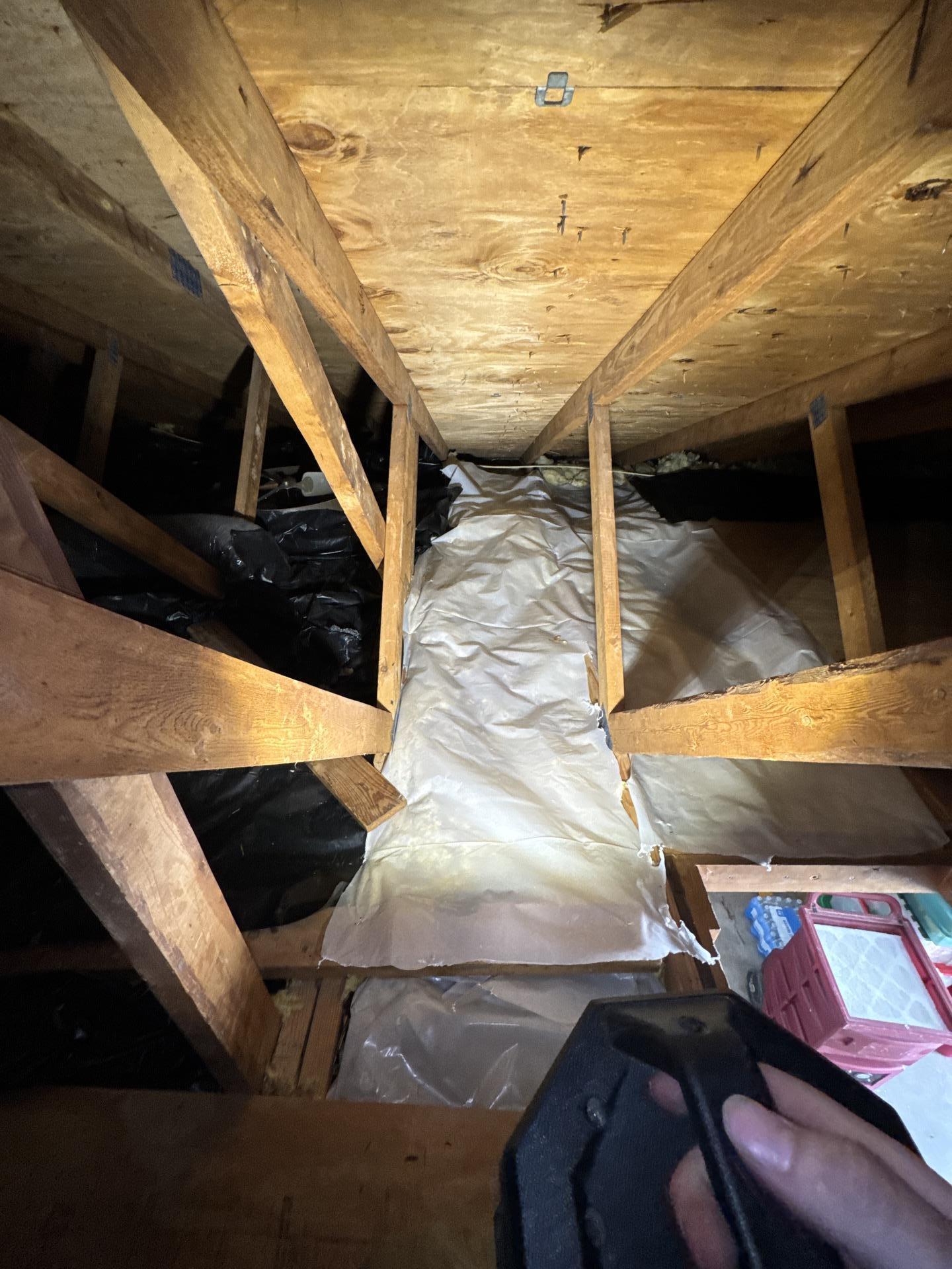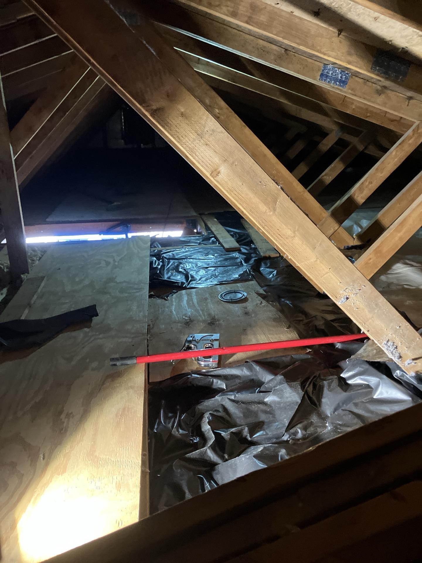 Our team provided comprehensive mold mitigation, which included containment of the affected area using plastic sheeting, removal of mold-impacted materials, cleaning and treatment of surfaces, and subsequent restoration of the attic space, including the installation of new insulation.